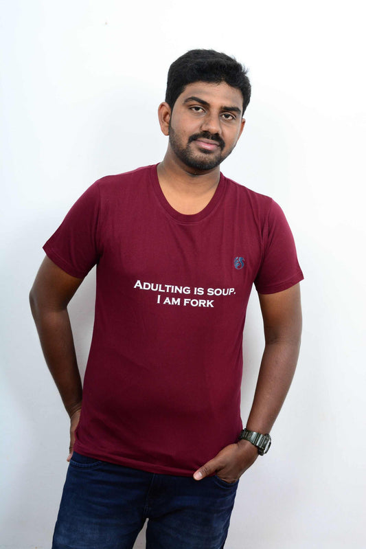 ''Adulting is soup. I am fork" Printed T-shirt
