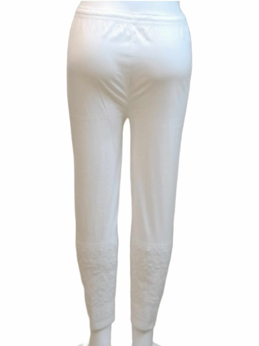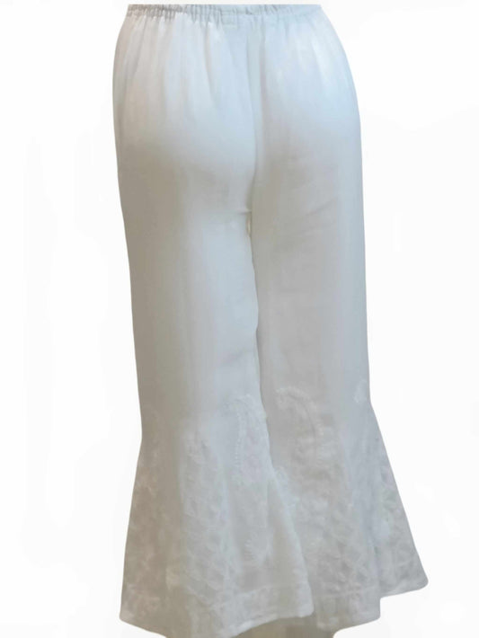 Hand Embroidered Cotton White Chikan Trouser